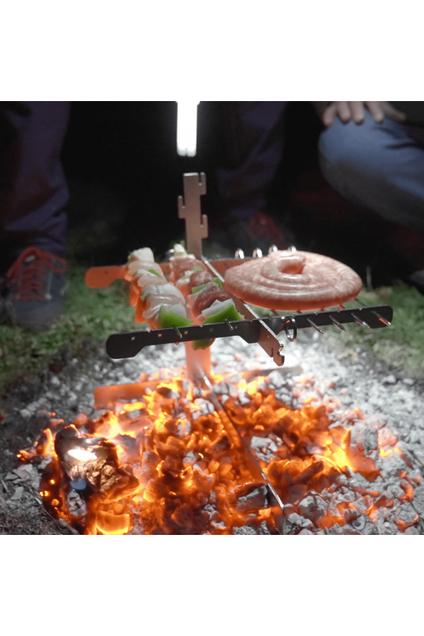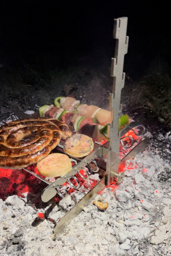 Aussi après la première réalisation du JAAP*, j’ai souhaité pouvoir offrir l’opportunité à tous les « baroudeurs, nomades, voyageurs, camping caristes » et ceux qui possèdent un insert chez eux, de pouvoir également profiter d’un bon Barbecue avec un système de grill, peu encombrant, pliable, efficace et lavable en machine à laver la vaisselle.